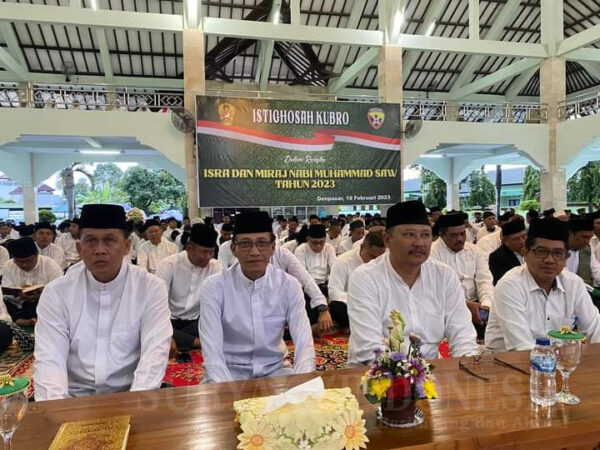 Kepala Badan Kesatuan Bangsa dan Politik (Kesbangpol) Provinsi Bali, Ngurah Wiryanata menghadiri peringatan Istighosah Kubro dalam rangka Isra Miraj 1444 H / tahun 2023 yang dipusatkan di Masjid Agung Sudirman Denpasar.