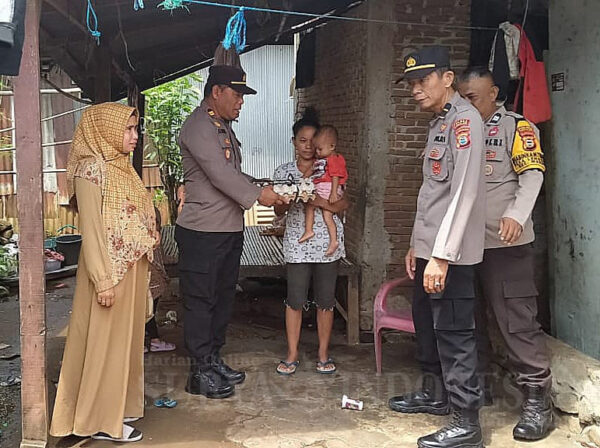 Pada kegiatan tersebut, Kapolsek Marbo Iptu H. Sarro memberikan bantuan paket sembako yang diberikan kepada orangtua/wali bayi penderita Stunting An. Nurjihan.