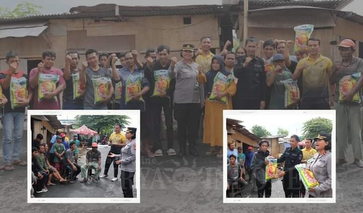 Kegiatan Jumat Curhat ini juga dirangkaikan dengan penyerahan paket sembako. ( Agung )