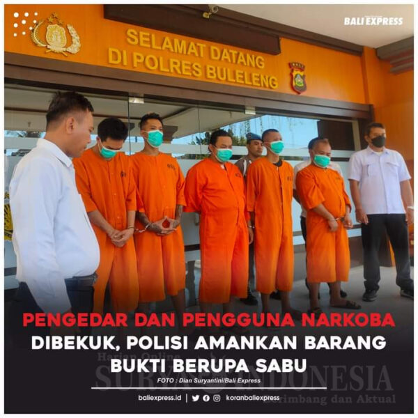 Buleleng , Surya Indonesia.net – Tiga pengedar dan 2 pengguna narkotika jenis sabu-sabu digelandang ke Polres Buleleng. Kelima orang tersebut kedapatan memiliki barang terlarang itu. Rata-rata sabu-sabu yang dimiliki dibawah 3 gram netto. Penangkapan terhadap pengedar dan pengguna narkotika ini dilakukan saat pelaksanaan Operasi Anti Narkotika (Antik) tahun 2023. Ops Antik dimulai tanggal 10 Mei 2023.