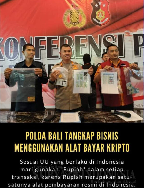 Didepan para awak media cetak, online dan elektronik, Kabid Humas menyampaikan kronologi penangkapan, berawal dari adanya berita viral di media online yang menyatakan bahwa Kripto dijadikan alat pembayaran di Bali. Selanjutnya Tim Siber Polda Bali melakukan penyelidikan dengan browsing di internet terhadap tempat-tempat yang diduga menggunakan Kripto sebagai alat pembayaran di wilayah Bali. Benar saja ditemukan ada beberapa tempat berupa Cafe, Rencar, Property yang menawarkan Kripto sebagai alat pembayaran dalam melakukan transaksi di website dan media sosial.
