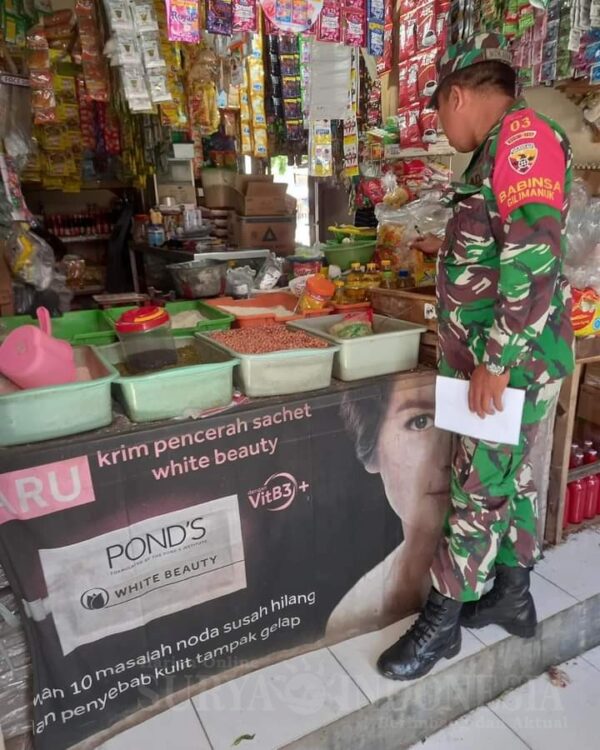 Jembrana , Surya Indonesia.net – Personil Babinsa Koramil 1617-03/Melaya Kodim 1617/Jembrana Serda Mohammad Adam turun langsung ke Pedagang Sembako di Pasar Umum Gilimanuk dalam rangka mengecek harga bahan pokok untuk mendukung program ketahanan pangan nasional bertempat di Pasar Umum Gilimanuk, Kecamatan melaya Kabupaten Jembrana, Kamis (29/02).