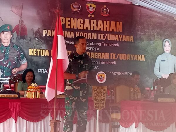 Jembrana , Surya Indonesia.net – Panglima Kodam IX Udayana Mayjen TNI Bambang Trisnohadi beserta ketua Persit KCK Daerah IX/Udayana Ny. Dian Bambang Trisnohadi, menyampaikan, mulai bilan April sampai Juni 2024 ada kejadian tiga lakalalin. Satu (1) metenggut nyawa prajurit dan dua (2) luka, kemudian ada delapan (8) PNS dan prajurit yang meninggal dunia dikarenakan sakit.yang disebabkan oleh penyakit jantung, gagal ginjal dan kanker. Ini dalam waktu kurun tiga (3) bulan saja, kemudian ada juga prajurit TNI yang bunuh diri dan ada empat ( 4) prajurit yang dersesi. Ini menjadi bahan evaluasi untuk kita semua terutama kepada perwira dan Damramil untuk berdekatan dengan anggota apabila ada permasalahan dianggota, dikeluarga tolong agar dicarikan solusi supaya jangan sampai mengambil tindakan sendiri.