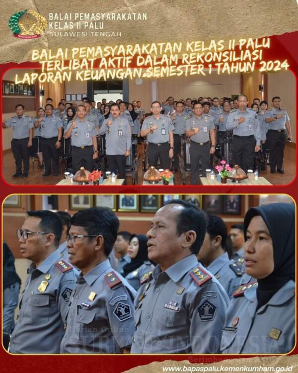 Sulawesi Tengah , Surya Indonesia.net – Balai Pemasyarakatan Kelas II Palu, di bawah Kantor Wilayah Kementerian Hukum dan HAM Sulawesi Tengah, menunjukkan komitmennya dalam pengelolaan keuangan yang transparan dan akuntabel. Hal ini dibuktikan dengan partisipasi aktif dua operator keuangan Bapas Kelas II Palu, Adit dan Riza, dalam Kegiatan Rekonsiliasi Laporan Keuangan Semester 1 Tahun 2024 Tingkat Wilayah.