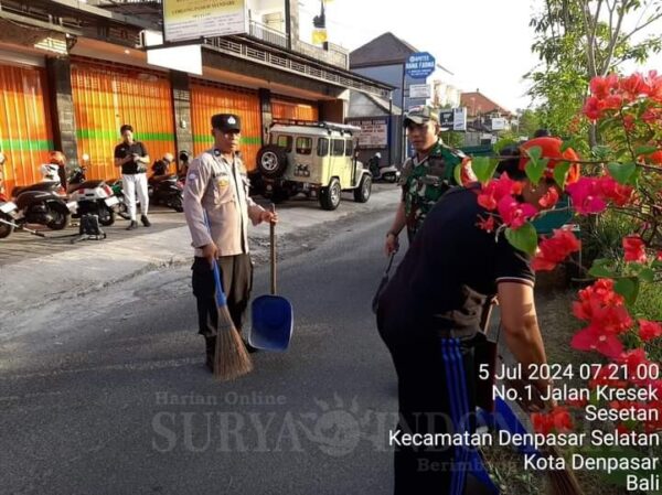 Denpasar Timur, Surya Indonesia.net- Polsek Denpasar Timur bersama dengan Anggota Bhabinkamtibmas Kel. Sesetan Aiptu I Made Antara bersinergi dengan Babinsa Kopda I Komang Pasek telah mengikuti dan melaksanakan kegiatan kerja Bakti (Jumat bersih) bertempat di sepanjang pinggir sungai Tukad rangda jln Kresek Link Suwung Batan Kendal Kel. Sesetan Kec. Denpasar Selatan. Jumat (5/7/2024).