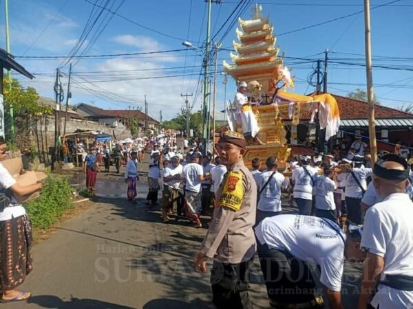 Polres Buleleng , Surya Indonesia.net – pengabenan Bendesa Mas Desa Kalianget kini sudah masuki acara puncak, dan guna memberikan rasa aman dan nyaman serta kelancaran kegiatan, Bhabinkamtibmas Desa Kalianget Polsek Seririt Bripka Putu Juliadi melaksanaan pengamanan dan pengaturan arus lalu lintas.