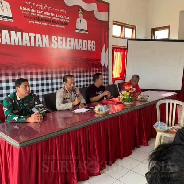 Tabanan/ Bajera , Surya Indonesia.net – Kapolsek Selemadeg, Polres Tabanan, Polda Bali, Kompol I Wayan Suastika, S.H. menghadiri rapat koordinasi yang di selenggarakan oleh Pemerintah Kec. Selemadeg bertempat di ruang rapat kantor Camat Selemadeg dalam rangka Hari Kemerdekaan RI Ke-79 yang akan di langsungkan pada bulan Agustus 2024 mendatang. Jumat (05/07/2024). Pkl. 09:00 Wita.