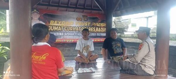 Badung/Mangupura , Surya Indonesia.net – Perhelatan pesta demokrasi khususnya Pemilihan Umum Kepala Daerah (Pemilukada) baik Pemilihan Gubernur dan Wakil Gubernur Bali maupun Bupati dan Wakil Bupati Badung akan digelar secara serentak pada akhir Tahun 2024 ini. Guna menciptakan situasi kamtibmas yang kondusif Polres Badung menggelar Jumat Curhat yang merupakan salah satu program unggulan dari Kapolri (Program Beyond Trust Presisi), Kegiatan Jumat Curhat ini sebagai bagian dari upaya mendekatkan diri dengan masyarakat dan mendengarkan langsung aspirasi serta keluhan warga. Kegiatan kali ini diadakan di Balai Bengong Kantor Desa Sembung Kecamatan Mengwi Kabupaten Badung, Bali. Jumat (5 Juli 2024) pagi.