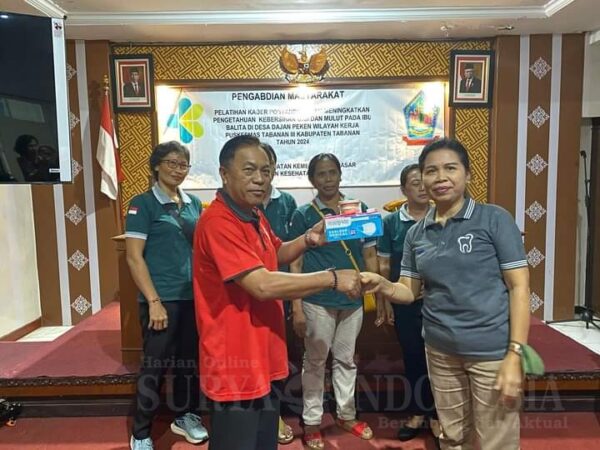 Tabanan , Surya Indonesia.net – Acara dalam kegiatan Pengabdian Masyarakat berlangsung di Kantor Desa Dajan Peken yang diselenggarakan oleh Politeknik Kesehatan Kemenkes Denpasar Jurusan Kesehatan Gigi yang bekerjasama dengan Pemerintah Desa Dajan Peken. Tajuk kegiatan yakni Pelatihan Kader Posyandu Kebersihan Gigi dan Mulut pada Ibu dan Balita di Desa Dajan Peken dengan Wilayah kerja Puskesmas Tabanan III Kabupaten Tabanan Tahun 2024.
