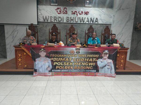 Mengwi , Surya Indonesia.net – Jumat Curhat merupakan salah satu program Polri untuk mendengarkan langsung keluhan kamtibmas dari masyarakat yang tidak dilaporkan ke kantor polisi serta memberikan win win solution sehingga keamanan dan ketertiban dimasyarakat tetap terjaga