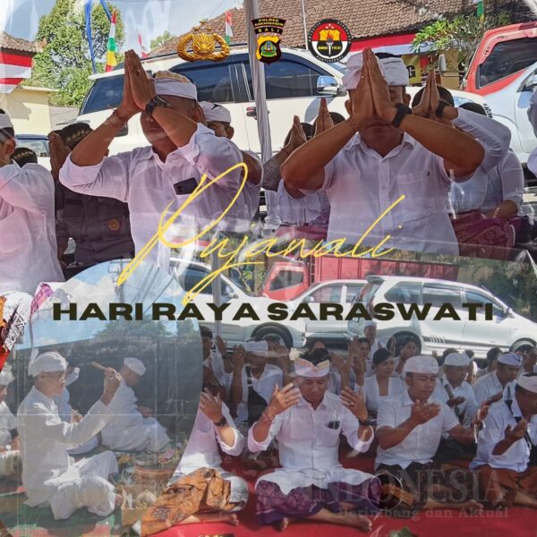 Kepala Kepolisian Sektor Rendang Kompol Made Suadnyana,S.Sos bersama seluruh staf dan anggota Polsek Rendang serta Bhayangkari melaksanakan Kegiatan sembahyang bersama di Pura Padmasana Polsek Rendang terkait Piodalan Hari Raya Saraswati sebagai upaya memuja Sang Hyang Aji Saraswati dalam ajaran Hindu mengandung makna, turunnya ilmu pengetahuan sekaligus sebagai penghormatan terhadap Dewi Pengetahuan yaitu Dewi Saraswati, sabtu (13/7).