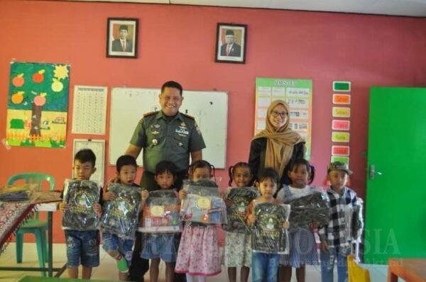 Jembrana , Surya Indonesia.net – Dandim 1617/Jembrana Letkol Inf M. Adriansyah S.I.P, M.I.P, di dampingi Ibu Ketua Persit Kartika Chandra Kirana Cabang XXXVI Kodim 1617/Jembrana Ny. Putri Adriansyah menyerahkan bantuan Perlengkapan Alat Tulis dan Tas Sekolah ke TK Kartika Jaya Kodim 1617/Jembrana, bantuan di terima langsung oleh peserta didik TK Kartika Jaya.