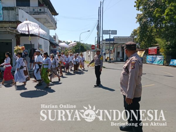 Dalam kegiatan tersebut Personil Polsek Padangbai memberikan pengamanan peserta yg melaksanakan Upacara meajar ajar di sepanjang jalan menuju Pura yang ada diwilayah Padangbai,