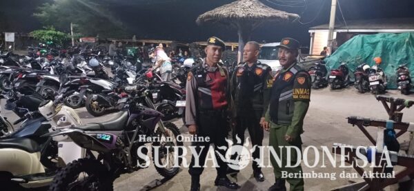 di sekitar parkir, tampak Anggota Unit Samapta bekerja sama dengan Linmas dan Pecalang Desa Adat Canggu mengingatkan pengunjung agar selalu memastikan kendaraan yang di tinggal dalam kondisi stang terkunci sehingga aksi pencurian sepeda motor dan barang berharga lainnya dapat di minimalisir.