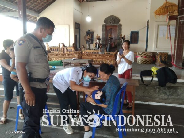 Karangasem , Surya Indonesia.net – Polsek Sidemen Pada hari Rabu tanggal 24 Juli 2024 pukul 08.30 wita Bhabinkamtibmas Desa Kertha Buana, Aipda I Wayan Gede Sumiarta melaksanakan sambang sekaligus pemantauan kegiatan Posyandu Balita dan pemberian Vaksinasi Folio untuk anak di bawah 7 tahun yang di laksanakan secara serentak di desa Kertha Buana.