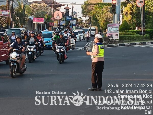 Denpasar Barat , Surya Indonesia.net – Dalam rangka terciptanya situasi arus lalu lintas yang aman dan lancar, Kepolisian Sektor Denpasar Barat (Polsek Denbar) dengan melibatkan Unit Lantasnya melaksanakan penegakan dan pengaturan (Gatur) lalu lintas (Lalin) di empat persimpangan yaitu simpang Buagan, Simpang Dam, simpang Supiori dan simpang Umadui Denpasar.