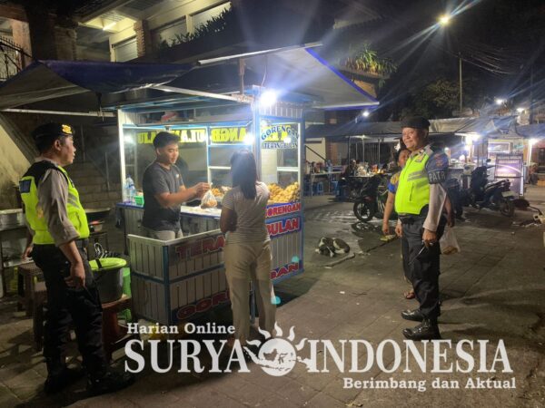 Abiansemal , Surya Indonesia.net – Personil Patroli Biru Polsek Abiansemal yang dipimpin Pawas Iptu I Nyoman Suagusdika menyambangi pedagang terang bulan di seputaran pasar senggol Blahkiuh, Desa Blahkiuh, Kecamatan Abiansemal, Kabupaten Badung. Jumat (26/07/24) Pkl. 21.15 Wita.