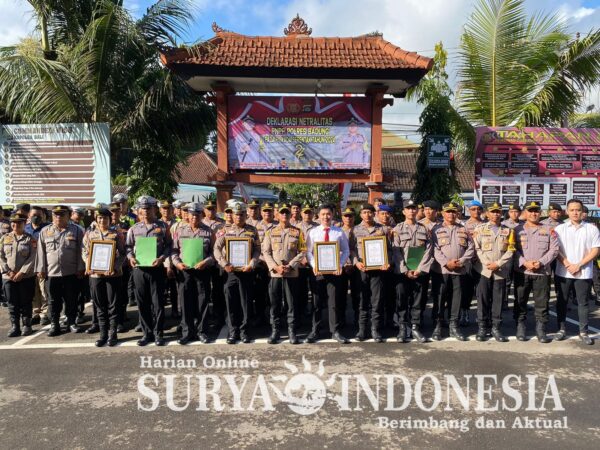 Mangupura , Surya Indonesia.net – Kepala Kepolisian Resor Badung AKBP Teguh Priyo Wasono, SIK. pimpin jam pimpinan dirangkaikan dengan penyerahan piagam Penghargaan kepada Personel yang berprestasi, bertempat di lapangan apel Jl. Kebo Iwa no. 1 Mengwitani Kecamatan Mengwi Kabupaten Badung, Bali. Senin (29/07/2024) pagi