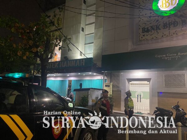 Blue Light Patrol malam hari menyambangi Obyek Vital salah satunya Kantor Perbankan dan Gerai ATM Bank Pembangunan Daerah Bali di jalan raya Gatsu Barat, Kelurahan Kerobokan Kaja, Kecamatan Kuta Utara, Kabupaten Badung.