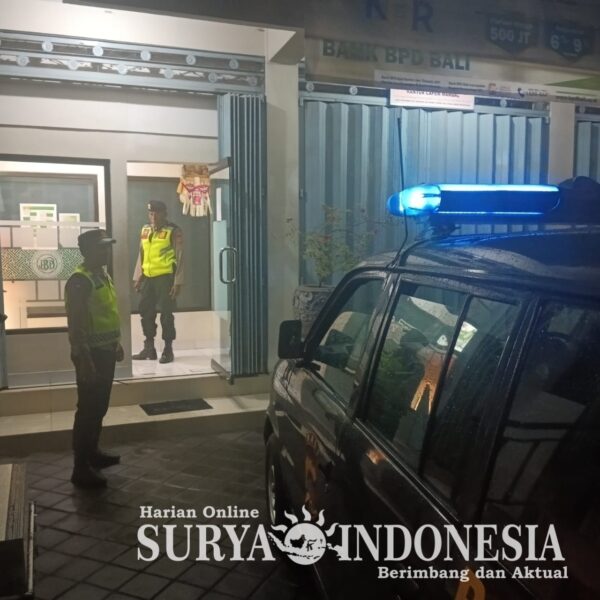 Abiansemal , Surya Indonesia.net – Dalam mengantisipasi kriminalitas yang terjadi di obyek vital seperti di Bank yang memiliki tingkat kerawanan yang tinggi, personel Polsek Abiansemal melakukan Blue Light Patrol yang bersifat pemantauan di Bank BPD Bali Unit Mambal, Kecamatan Abiansemal. Rabu, (31/07/24) Pkl. 03.15 wita