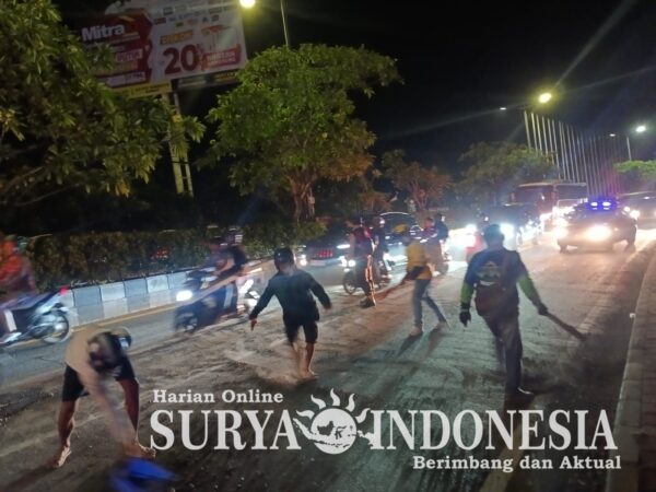 Polsek Kuta Selatan Gelar Blue Light Patrol, Bersihkan Tumpahan Koral dan Semen di Jalan demi keselamatan pengguna jalan