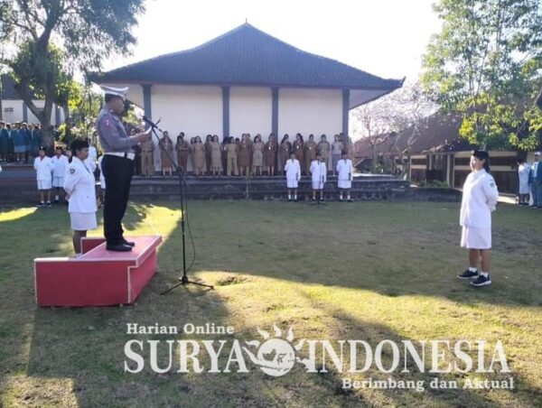 Tabanan , Surya Indonesia.net – Kanit Lantas Polsek Selemadeg gelorakan tertib berlalulintas di SMAN 1 Selemadeg Senin, 05/08/2024 07:30 Wita, Kanit Lantas Polsek Selemadeg Iptu I Nyoman Mardiasa menjadi pembina upacara dan memberikan sambutan tentang Kamseltibcar lantas kepada siswa-siswi SMAN 1 Selemadeg.