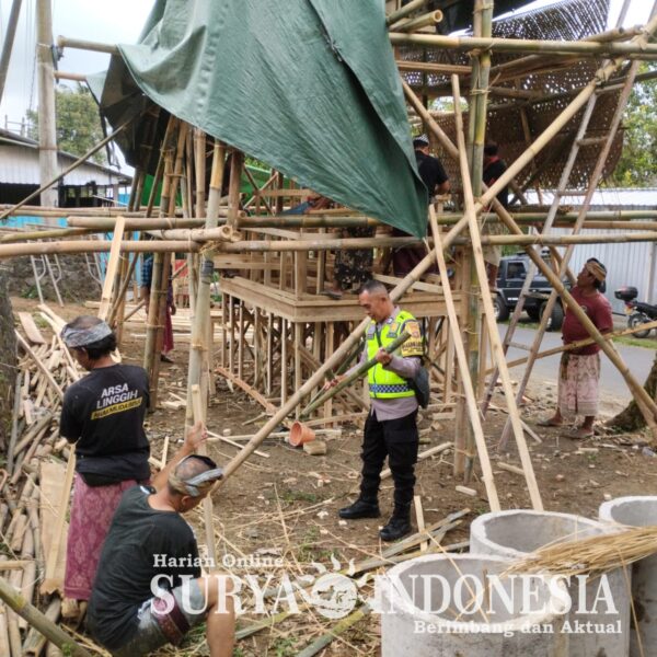 Saat pelaksanaan Sambang disamping memberikan himbauan Kamtibmas selaku Bhabin juga turut serta membantu mengerjakan sarana perlengkapan Upacara dimaksud.