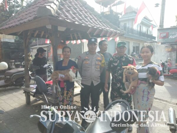 Polsek Blahbatuh Polres Gianyar turut mendukung dan menyukseskan program penanggulan Rabies sebagaimana pengamanan yang dilaksanakan melalui Sinergi TNI-Polri oleh Babinsa dan Bhabinkamtibmas Bedulu, Selasa/6 Agustus 2024.