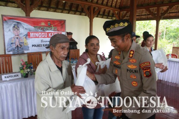 Karangasem , Surya Indonesia.net – Kapolres Karangasem, AKBP I Nengah Sadiarta, S.I.K., S.H., M.K.P., memimpin kegiatan Minggu Kasih di Dusun Tanah Ampo, Desa Jungutan, Kecamatan Bebandem, Kabupaten Karangasem, Minggu (11/8/2024). Kegiatan ini merupakan wujud kepedulian Polri kepada masyarakat, khususnya dalam hal kesejahteraan.