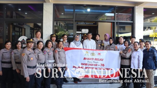 Denpasar, Surya  Indonesia.net – Dalam rangka menyambut Hari Jadi Polisi Wanita (Polwan) ke-76, Polwan Polresta Denpasar melaksanakan kegiatan Bakti Religi di beberapa tempat ibadah di Kota Denpasar. Kegiatan ini dipimpin oleh senior Polwan Polresta Denpasar, Kompol Laksmi Trisnadewi W, SH., S.I.K., bersama dengan Kompol Ida Ayu Purwa Astuti dan AKP Amelia Magdalena Letoati, serta diikuti oleh 15 personel Polwan.