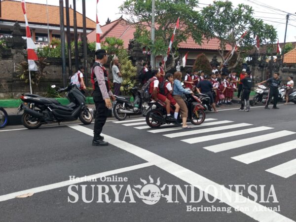 Mangupura , Surya Indonesia.net – Untuk memberikan rasa aman dan nyaman masyarakat Polres Badung dan jajarannya terus meningkatkan melaksanakan Patroli dan Pengaturan arus Lalu Lintas di beberapa ruas jalan, Seperti halnya nampak siang ini petugas dari unit Patroli Polsek Mengwi melakukan kegiatan antisipasi terjadinya kemacetan dan kecelakaan di depan sekolah di SD No.1 Mengwi, Kecamatan Mengwi, Kabupaten Badung, Selasa (13/8/2024) siang.