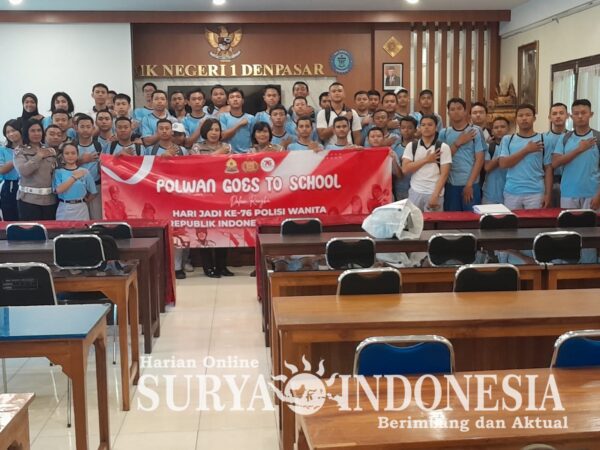 Denpasar, Surya Indonesia.net – Dalam rangka memperingati Hari Jadi Polisi Wanita (Polwan) ke-76, Polwan Polresta Denpasar mengadakan kegiatan “Polwan Goes To School” di SMK Negeri 1 Denpasar, Jalan Cokroaminoto. Kegiatan ini dipimpin oleh Iptu Ketut Madriani dan Ipda Sariwati, serta didukung oleh tiga personel Polwan lainnya.