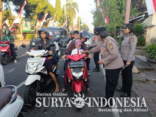Gianyar , Surya Indonesia.net – Menjelang Hari Ulang Tahun (Hut) Polwan ke-76 yang jatuh pada tanggal 1 September 2024 mendatang, Polisi Wanita dari Kepolisian Resor Gianyar membagikan bunga kepada pengendara yang melintas di Jalan Raya Ngurah Rai, Kabupaten Gianyar, Senin (19/8/2024) pagi.