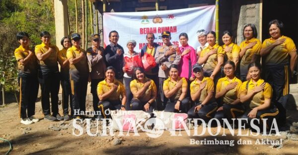 dalam rangka Hari Jadi Polwan Republik Indonesia yang ke 76 yakni melaksanakan giat Bedah Rumah milik warga tidak mampu Milik Ni Nengah Jani, 65, di Banjar Dinas Daya Desa Ban, Kubu Karangasem, Senin (19/8)