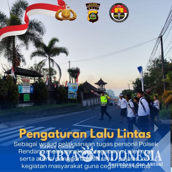 Karangasem ,Surya Indonesia.net – Polsek Rendang Wujud pelayanan Polri sebagai pelaksanaan tugas-tugas Kepolisian Personil Polsek Rendang Bripka I Made Ngasep melaksanakan pos pengaturan arus lalu lintas atensi anak-anak sekolah menyeberang jalan guna cegah kecelakaan lalu lintas, senin (19/8)