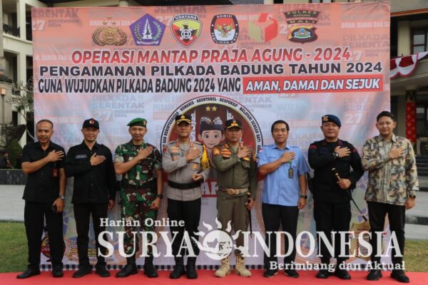 Mangupura , Surya Indonesia.net – Kepala Kepolisian Resor Badung AKBP Teguh Priyo Wasono, S.I.K. pimpin Apel gelar pasukan Operasi Mantap Praja Agung 2024” dalam rangka pemilihan pengamanan Bupati dan Wakil Bupati Badung Tahun 2024 di Daerah Hukum Polres Badung”. di Lapangan Mangupraja Puspem Kab. Badung Kelurahan Sempidi Kecamatan Mengwi Kabupaten Badung, Jumat 23 Agustus 2024.