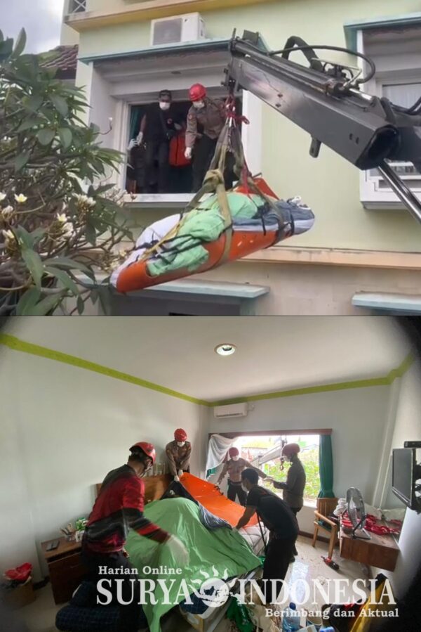 Denpasar , Surya Indonesia.net – Tim Sar Ditsamapta Polda Bali evakuasi korban meninggal di penginapan pondok asri jl kebo iwa Denpasar.