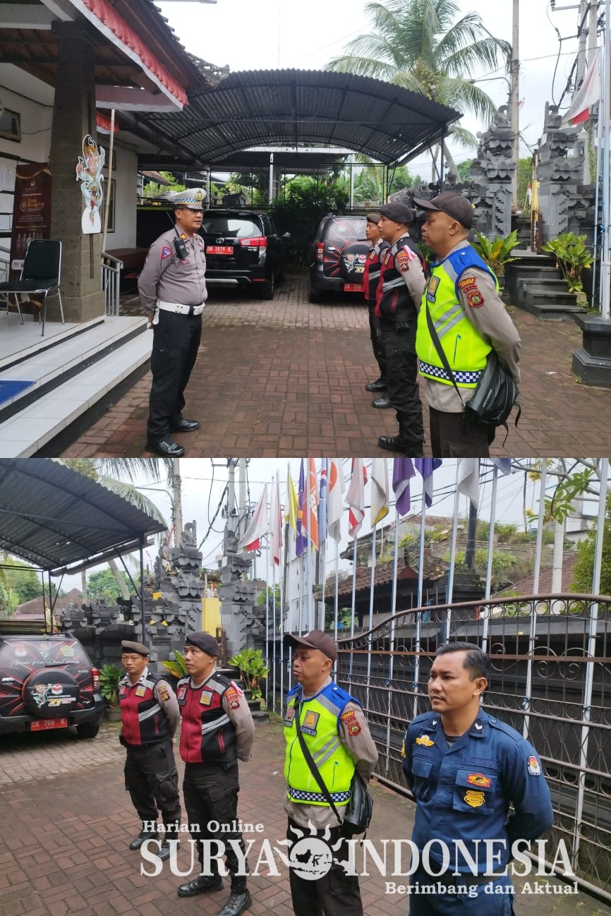 Dipimpin padal AKP Ketut Nariawan, SH personil Polres Gianyar dan Polsek Gianyar yang terseprin melaksanakan pengamanan Kantor KPUD Gianyar Jalan Jata Gianyar.