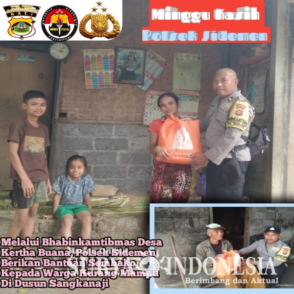 Kapolsek Sidemen AKP I Ketut Suastika,S.A.P., M.A.P, melalui Bhabinkamtibmas Desa Kertha Buana Aipda I Wayan Gede Sumiarta melaksanakan kegiatan “Minggu Kasih” dengan memberikan bantuan sembako kepada masyarakat yang membutuhkan di desa Kertha Buana ,Minggu (25 Agustus 2024)