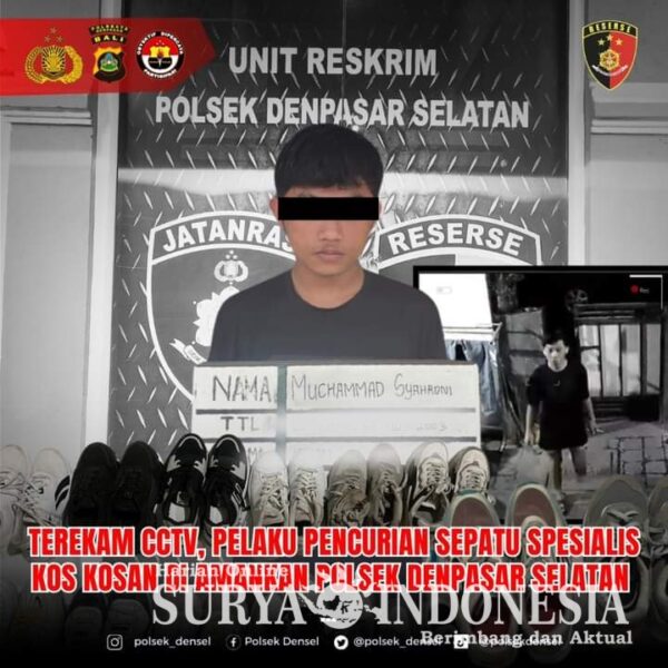 “Petugas berhasil mengamankan pelaku dikosnya daerah Pemogan Denpasar Selatan dan saat dilakukan pengeledahan petugas menemukan barang hasil curian berupa beberapa sepatu dan kipas angin,” tambah Kompol Herson.