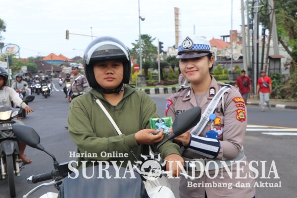 Mangupura , Surya Indonesia.net – Dalam rangka Hari Ulang Tahun Polisi Wanita ke – 76, Kepala Kepolisian Resor Badung AKBP Teguh Priyo Wasono, SIK. membagikan bingkisan coklat kepada para pengguna jalan raya, di simpang Polres Badung, Desa Mengwitani Kecamatan Mengwi Kabupaten Badung, Bali. Rabu (28 Agustus 2024) pagi pukul 08.00 wita.