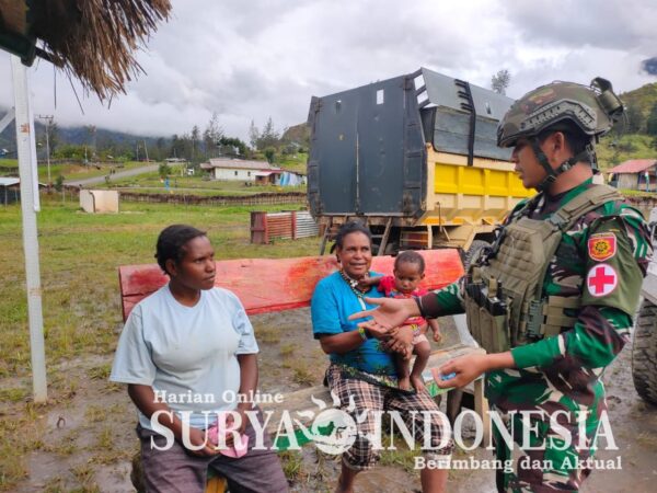 GOME , Surya Indonesia.net – Keberadaan Satgas Mobile Yonif 323 Buaya Putih yang melaksanakan tugas pokok menjaga di wilayah Papua yang dianggap rawan agar tetap aman dan damai, namun diluar tugas pokok tersebut satgas Yonif 323 Buaya Putih melalui Titik Kuat (TK) Gome juga tetap melaksanakan pelayanan terhadap masyarakat di wilayah penugasan yaitu pelayanan kesehatan, Kampung Jenggernok, Distrik Gome, Kabupaten Puncak, Papua Tengah, Senin (09/09/2024)