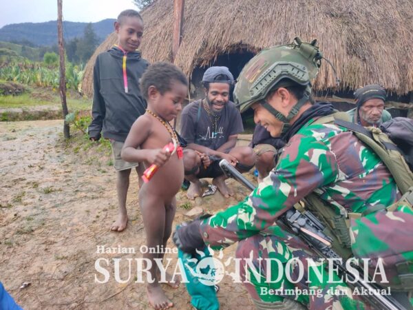 LAGA , Surya Indonesia.net – Pembinaan Teritorial terus dilakukan Satgas Pamtas Mobile Yonif 323 Buaya Putih, kali ini Prajurit Buaya Putih dari TK Gome melaksanakan Komunikasi Sosial (Komsos) dengan melakukan kunjungan ke rumah Bapak Abelum Kogoya selaku Kepala Suku Besar Dani dan masyarakat lainnya di sekitar TK Gome, di Distrik Ilaga, Kabupaten Puncak, Papua Tengah.