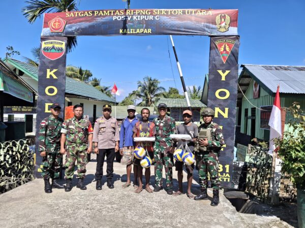 KEEROM , Surya  Indonesia.net – Satgas Yonif 131/BRS melalui Pos Kalilapar memberikan bantuan alat olahraga bola voli sebagai sarana membangkitkan minat olahraga pemuda yang bertempat di Kp. Sach, Distrik Waris, Kabupaten Keerom, Papua, Kamis (03/10/2024).