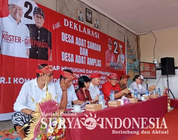 Tabanan Penebel , Surya Indonesia.net – Masyarakat dari Banjar Sandan dan Banjar Amplas, Desa Wongaye Gede mengadakan acara deklarasi calon Gubernur dan Wakil Gubernur Bali memilih Koster-Giri, calon Bupati dan Wakil Bupati Tabanan bertempat di Banjar Sandan . Pada acara ini dihadiri oleh berbagai tokoh masyarakat, anggota dewan, serta pendukung setia.