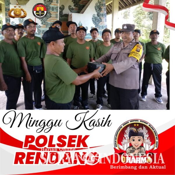Karangasem , Surya Indonesia.net – Polsek Rendang Sesuai perintah dan seijin Kapolsek Rendang Kompol Made Suadnyana,S.Sos Ps. Panit Binmas Aiptu I Wayan Sutiawan bersama Bhabinkamtibmas Desa Pesaban Aiptu I Komang Alit Wilantara melaksanakan program Minggu Kasih dengan menyerahkan bantuan sosial berupa sarana kontak senter lalu lintas kepada anggota Linmas Desa Pesaban sebanyak 6 buah guna mendukung sarana prasarana dalam melaksanakan tugas Linmas di Desa Pesaban, minggu (6/10)