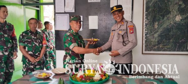 Karangasem , Surya Indonesia.net – Surprise HUT TNI, Kapolsek Sidemen bawa nasi tumpeng ke Makoramil 1623-04.