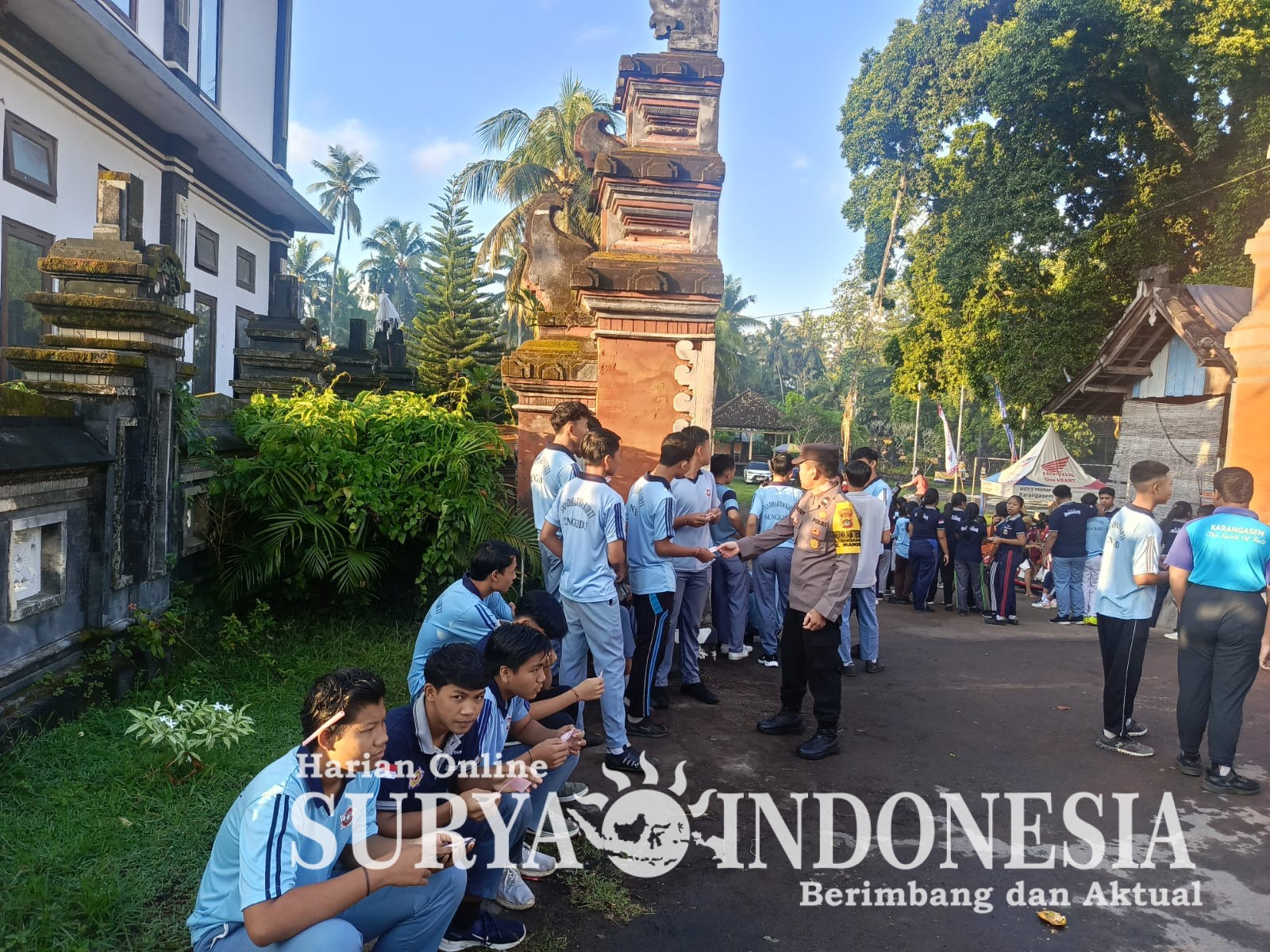 Disela Melaksanakan Pelayanan Pagi, Bhabinkamtibmas Desa Tenganan Berikan Himbauan Kamtibmas Kepada Para Siswa.