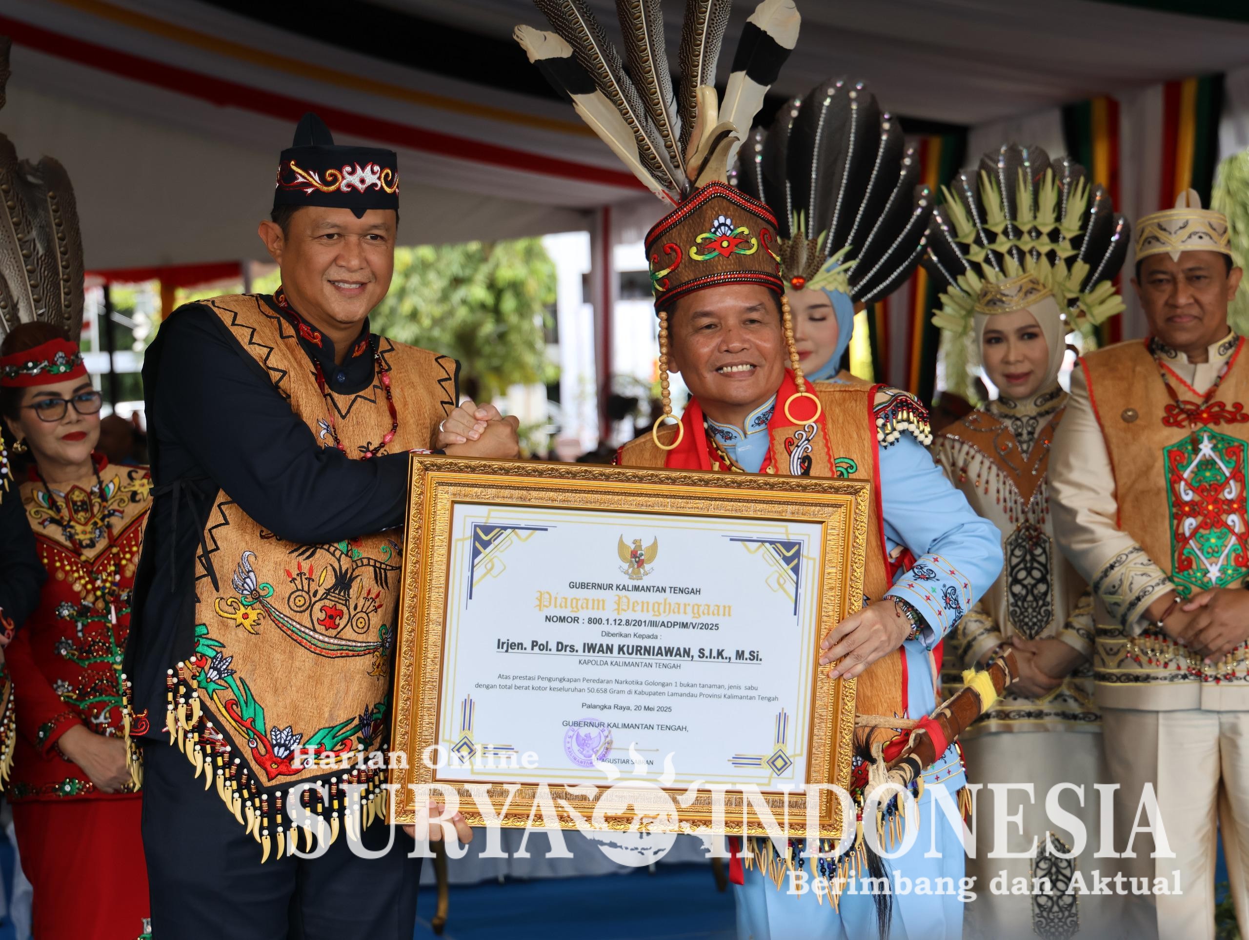 Pasalnya, dalam acara tersebut Gubernur Kalteng H. Agustiar Sabran menyerahkan langsung penghargaan kepada Kapolda Kalteng, Irjen Pol Iwan Kurniawan, atas keberhasilan jajarannya dalam mengungkap kasus narkoba di wilayah Lamandau, usai pelaksanaan upacara HUT Kalteng ke-68, di Halaman Kantor Gubernur, Jumat (23/5/2025).