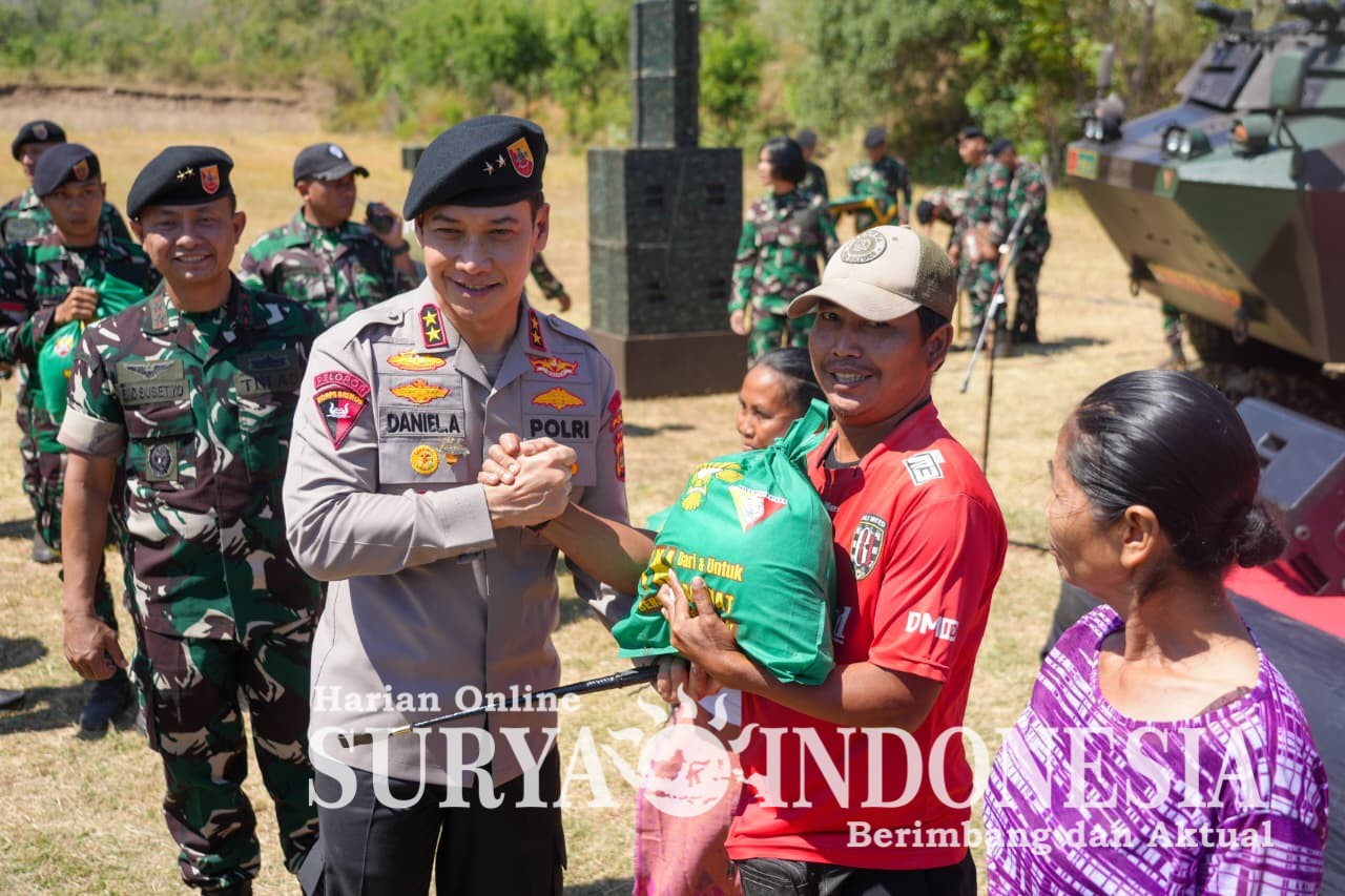 Di penghujung kegiatan Kapolda Bali, Danpussenkav TNI AD, dan Pangdam IX/Udayana berkesempatan menyerahkan tali asih kepada perwakilan masyarakat.